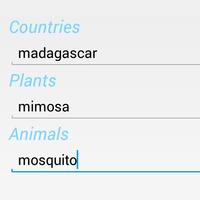 Certaines des catégories disponibles sont les suivantes: animaux, couleurs, pays, aliments, noms, plantes, professions, etc.