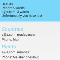 heure de l'écran des paramètres). Sur l'écran des résultats du jeu, vous pouvez voir le gagnant et les mots de l'adversaire.